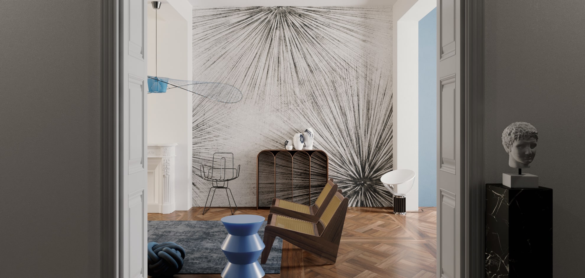 In un’ottica di reinterpretazione della classica carta da parati, si lavora per dare nuova personalità alle superfici grazie a un team di esperti che, per le proprie creazioni, prende ispirazione da mondi diversi (arte, design, moda, cinema, natura).