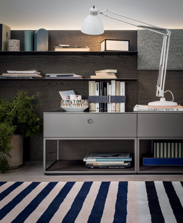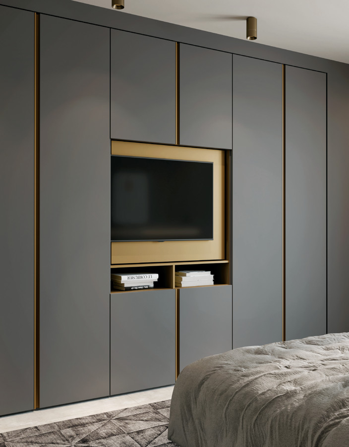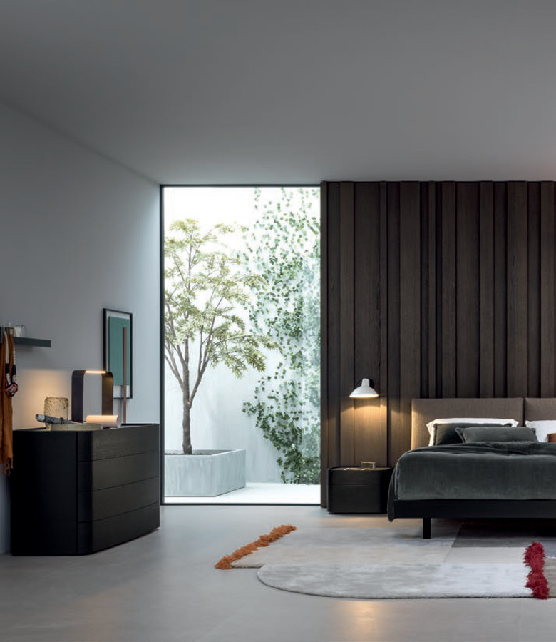La parete si trasforma in un elemento decorativo e funzionale, convertendo uno spazio normalmente trascurato in un sistema di arredo e praticità nella zona notte. Tutto è a portata di mano o in evidenza, a seconda dei gusti e del progetto, rendendo ogni dettaglio parte integrante dell'ambiente notturno.