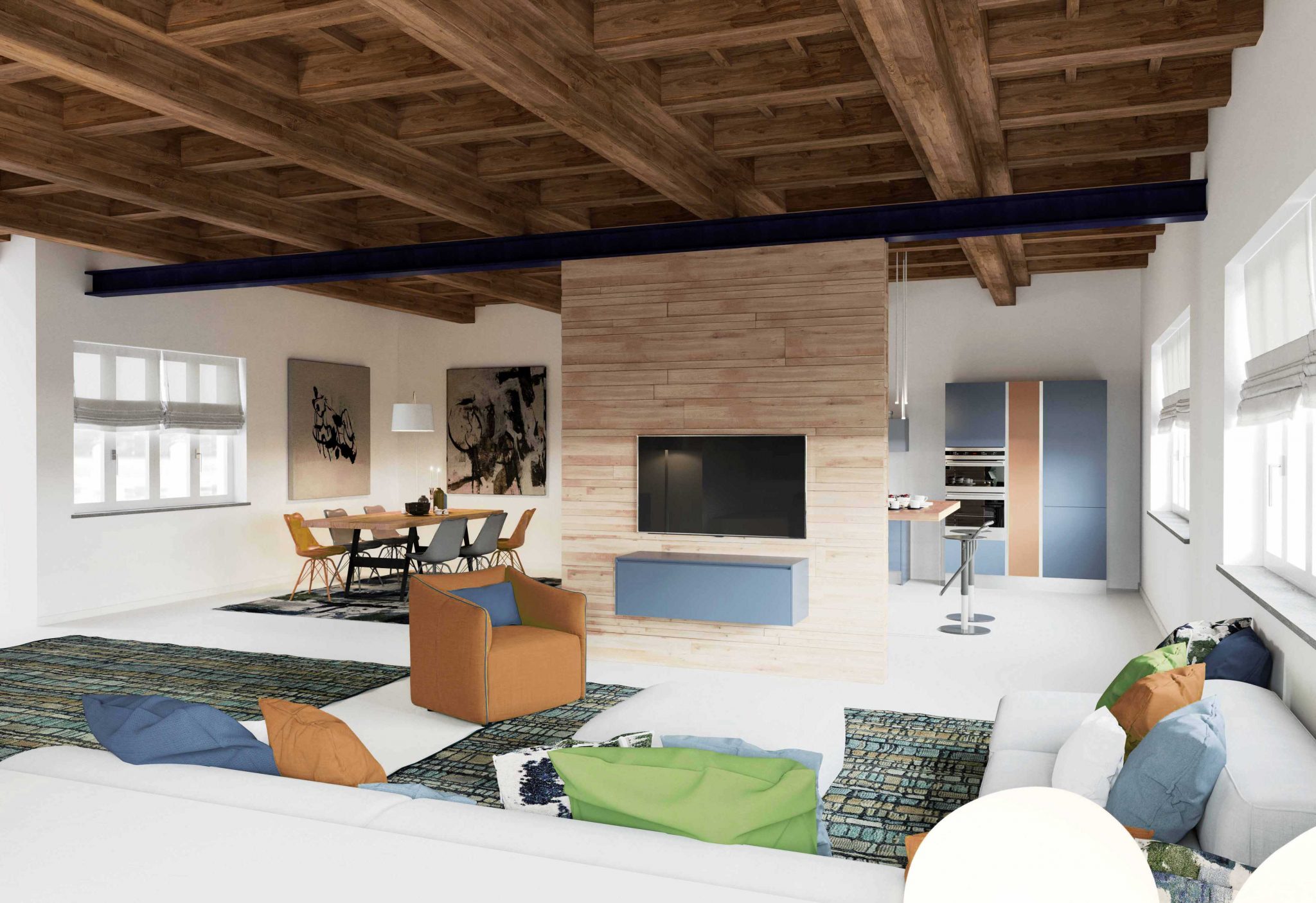 In quest’ottica è possibile dare molta importanza alla cucina (nuovo spazio di aggregazione secondo gli archetipi della Tv e della pubblicità), che si integra infatti sempre più di frequente al soggiorno, decretando in pratica la scomparsa della zona pranzo così come tradizionalmente intesa. Tuttavia, il permanere in Italia di una tradizione culinaria addirittura secolare e ben radicata, le abitudini, in fondo, sedentarie della popolazione, la presenza ancora ben strutturata di nuclei familiari con figli, fanno sì che tale tendenza si concretizzi, al massimo, nel dare maggior importanza a una grande cucina abitabile e nell’eliminare l’ulteriore tavolo (con gli ingombranti mobili che spesso lo accompagnavano) che una volta si posizionava nella sala da pranzo, appositamente collocata in casa. In verità questa mutazione crea molto spesso anche il desiderio (o dovremmo forse parlare di vero e proprio “pentimento”) di rinunciare agli “open-space” e di avere un ambiente cucina separato dal soggiorno (se non altro per creare un filtro al passaggio di odori e rumori) e collocato in un locale a sé stante. Tale desiderio finisce però quasi sempre per rimanere inesaudito per la carenza di spazio presente nei nuovi edifici ed è per questo che le conformazioni attuali dei soggiorni sono così diffuse. Va da sé che il soggiorno, in ogni caso, rimarrà lo spazio deputato ad accogliere le altre attività sopra descritte compresa un’adeguata zona pranzo, magari organizzata con elementi ripiegabili (se usato per poche significative occasioni all’anno), oppure attorno a una tavola di piccole dimensioni e certamente allungabile, così come tutte le altre attività di cui avremo modo approfonditamente di parlare in questo spazio.