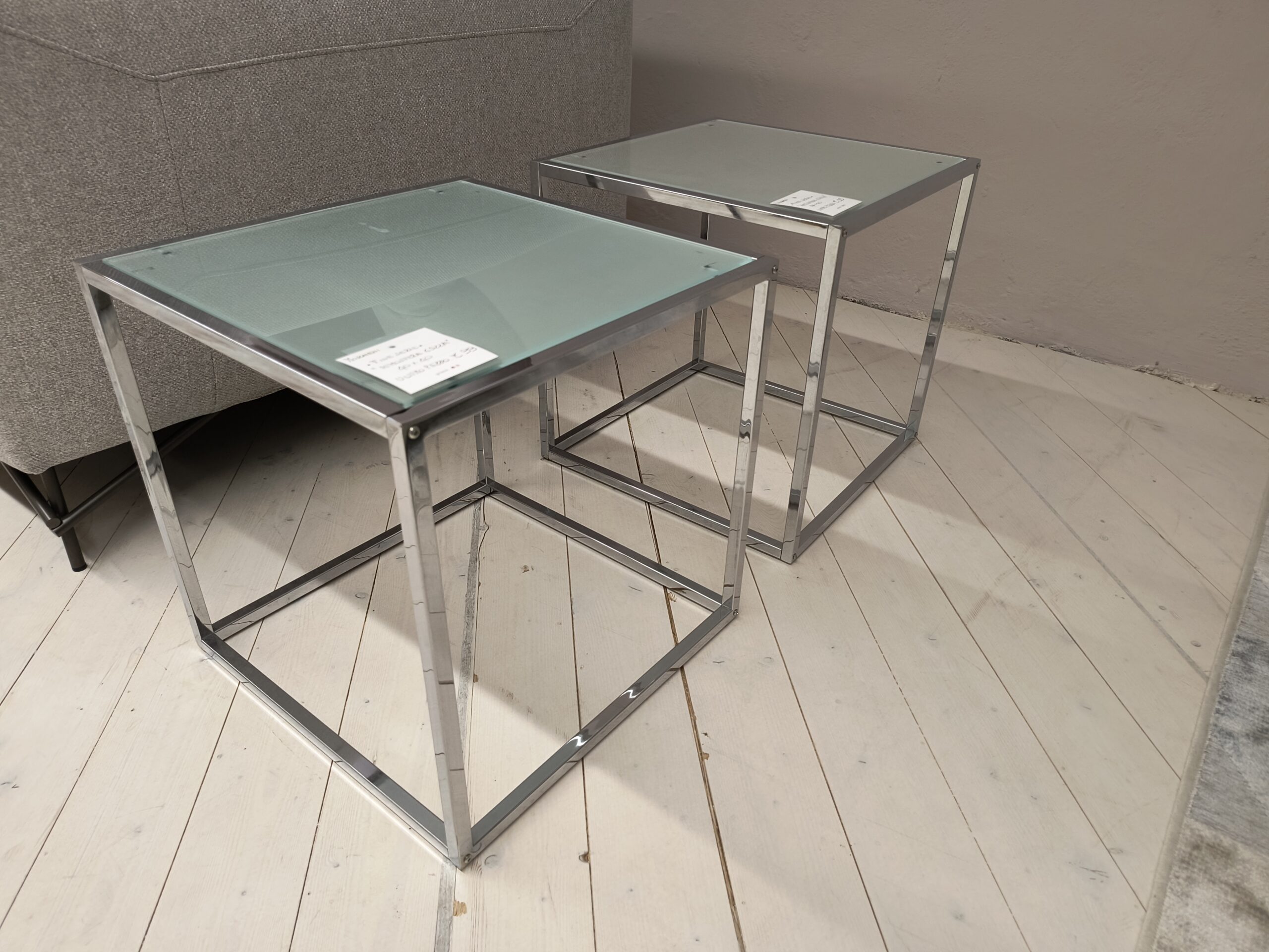 COMODINO “ATMOSFERE” 40x40 STRUTTURA CROMO + PIANO VETRO SATINATO FINE SERIE CAD.